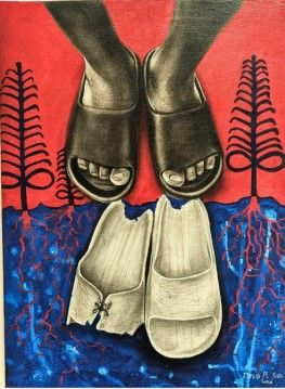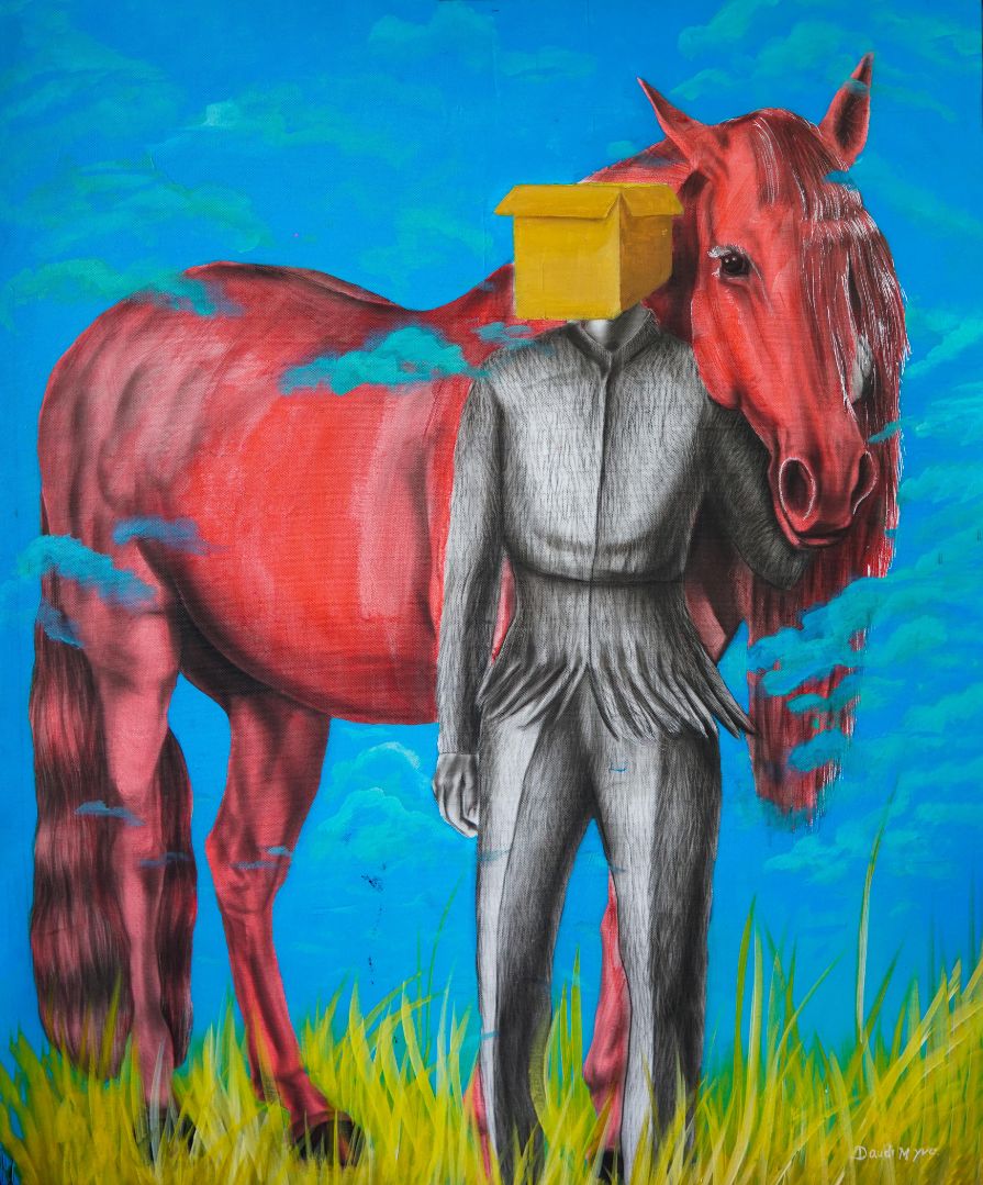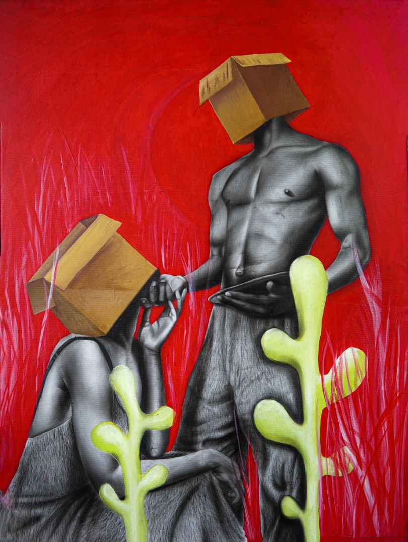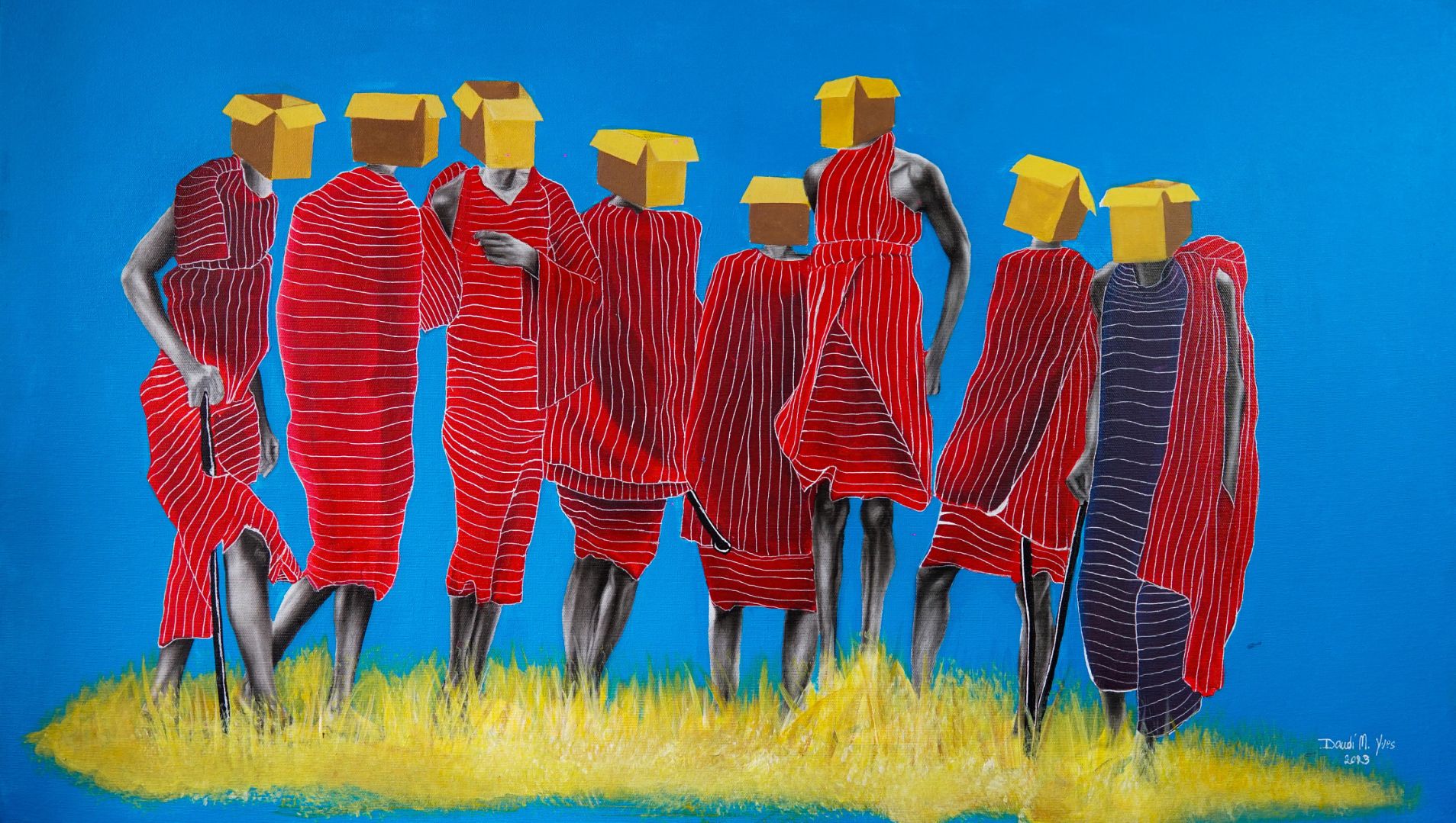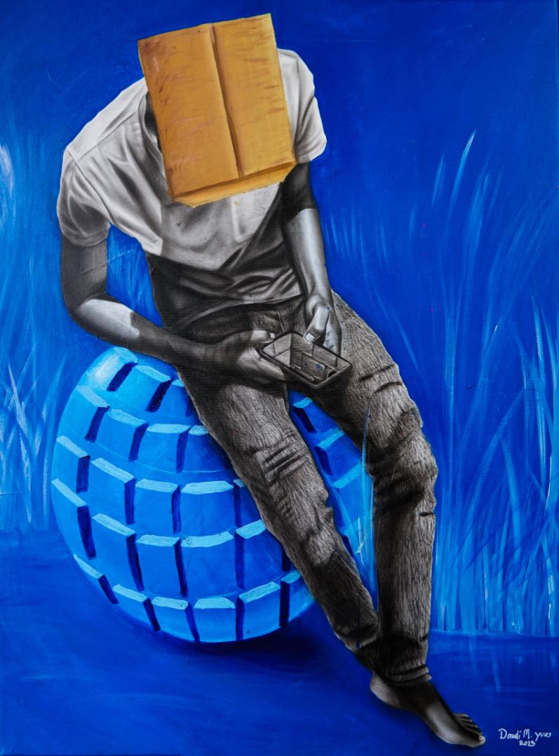 Daudi Yves Magisha was born in 2000. Daudi Yves Magisha is a contemporary artist living and working in Zambia. He explores the link between mental health and creativity, as well as toxic masculinity and men’s emotions, using art as a means of self-reflection and a tool for change and inspiration. Through innovative conceptual drawings and paintings on paper and canvas, Daudi engages in multidisciplinary modes of art to address and find solutions to common issues affecting local and global communities. In his work, he uses painting and mixed media to explore themes of change, self-reflection, and enlightenment, drawing inspiration from the Masai tribe. Incorporating symbolic forms like open and closed boxes to represent open-mindedness and closed-mindedness, he challenges viewers to broaden their perspectives and treat themselves and others with compassion. His art addresses diverse topics such as growth, mental health, and societal issues, aiming to push viewers beyond their comfort zones and inspire positive change.